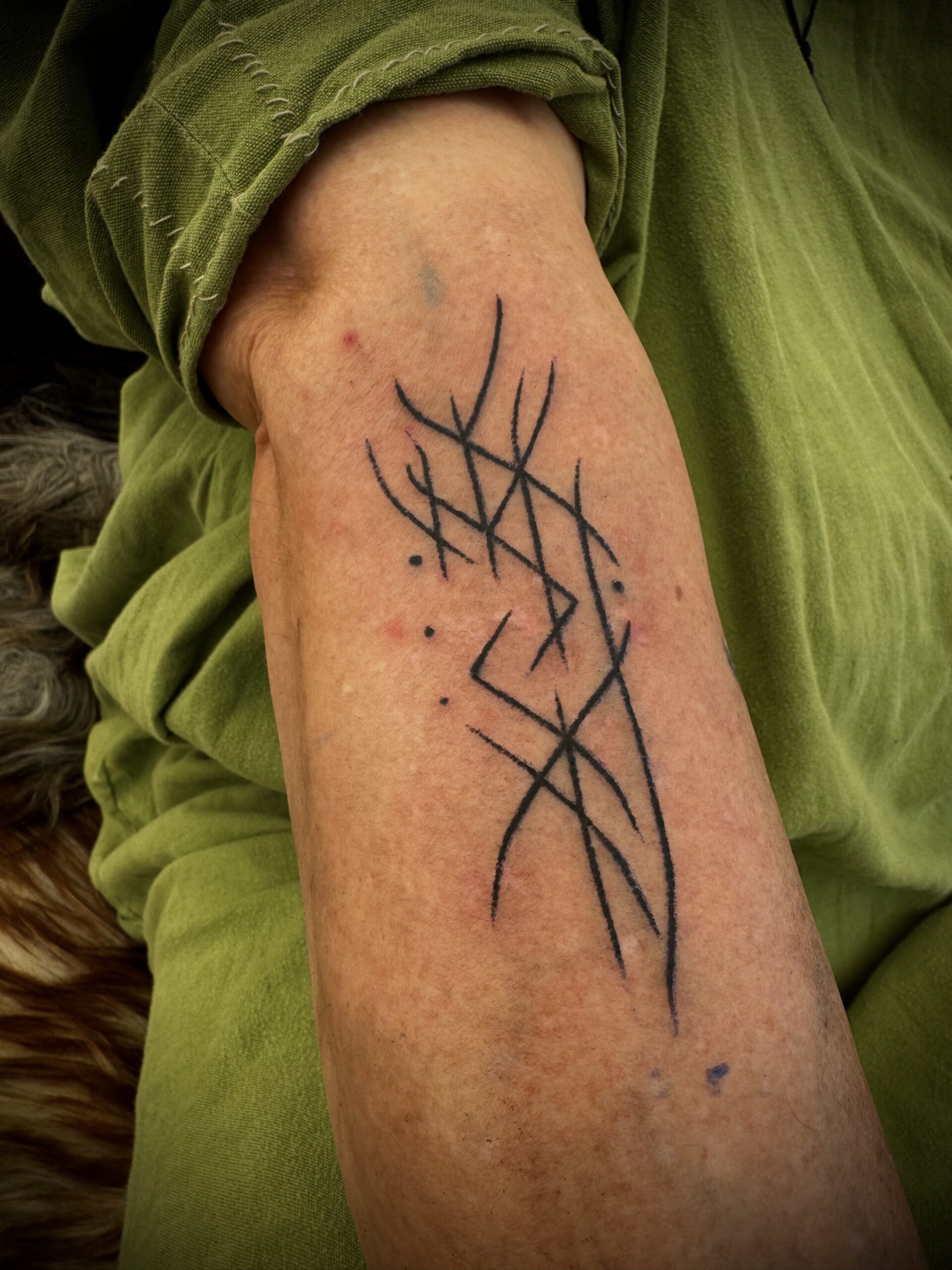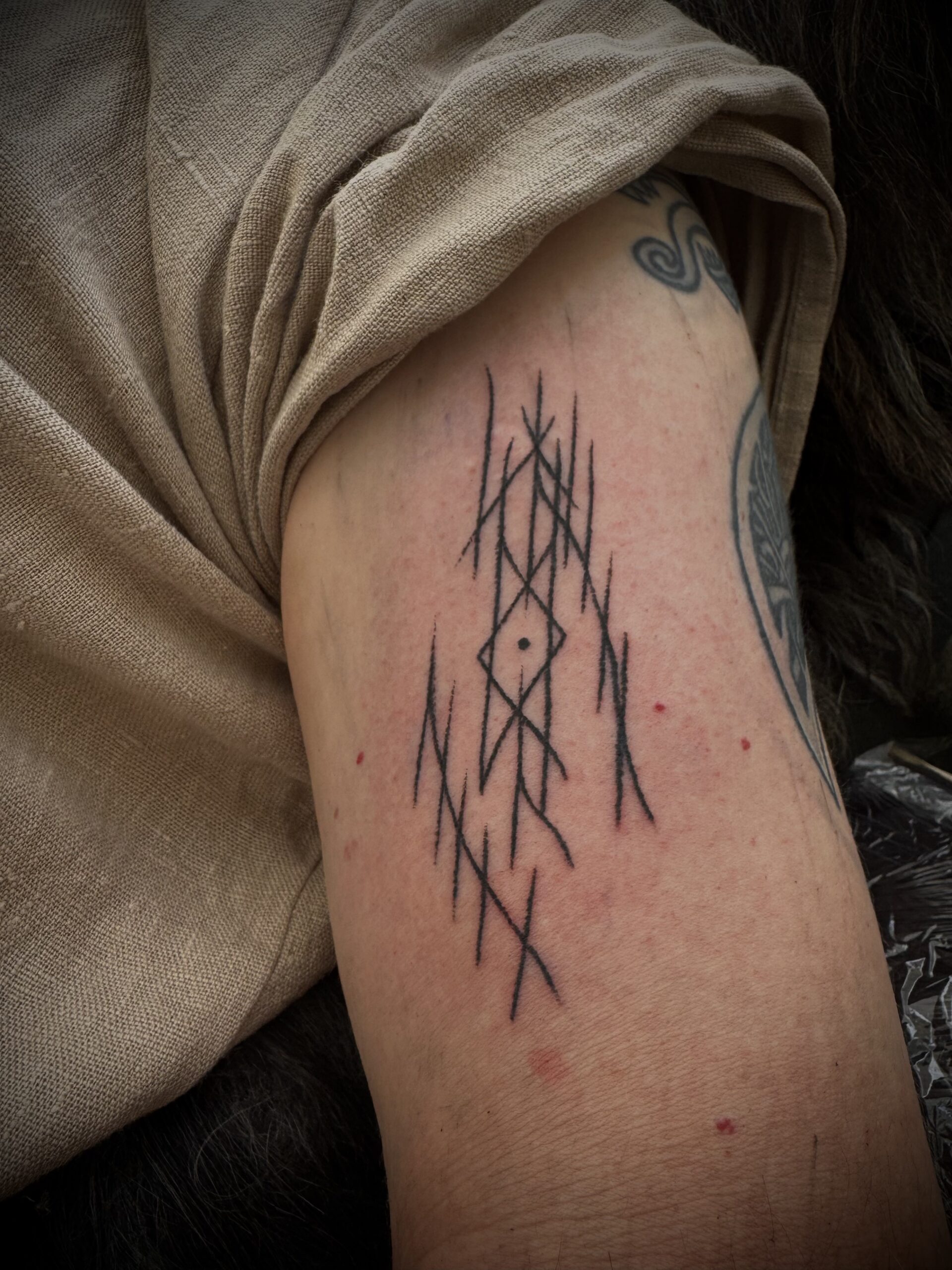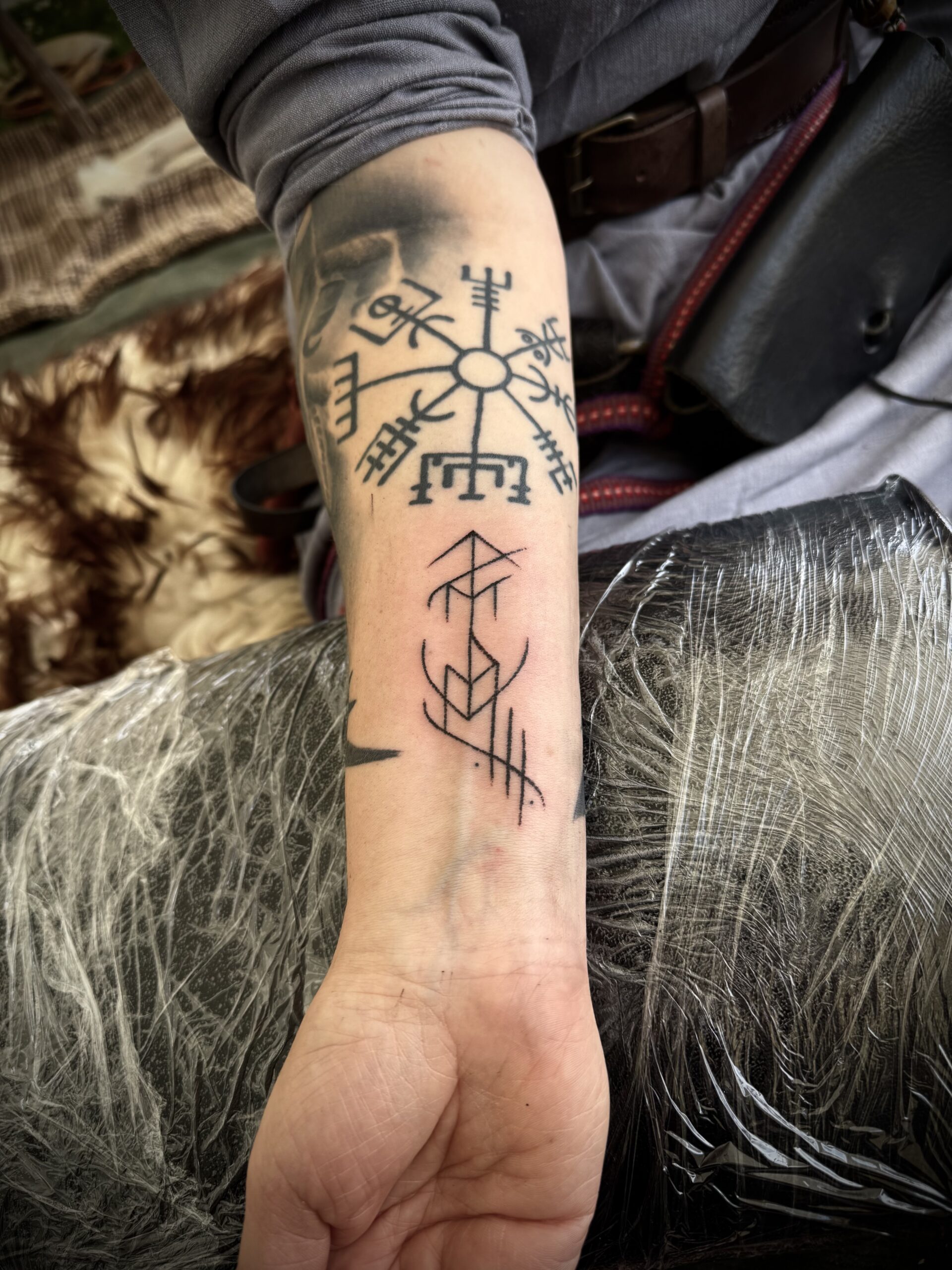 Wenn ich Runen oder Bindrunen tätowiere, geschieht das in Ruhe und mit Achtsamkeit. Jedes Symbol wird von mir gebunden und ich schaffe so eine Verbindung zwischen alter Bedeutung und dem Menschen, der sie trägt. So werden aus Zeichen Begleiter.